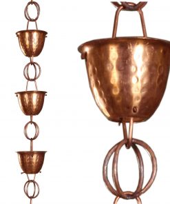 Hammered Copper Cups 8.5-Feet Rain Chain Rain Gutter Downspout Alternative