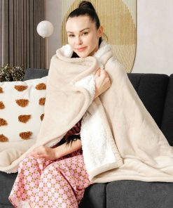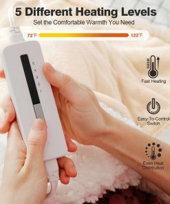 Stay warm and cozy all winter long with this 5 Setting Heated Electric Sherpa Throw Blanket in Beige/White! This blanket has a thermostatic controller for you to adjust the temperature from 72 to 122℉ in 5 different setting levels. This blanket also has auto shut off after the heating system is turned on for 3 hours. Get increased security while cutting the electricity bill. Made of flannel and Sherpa that is comfortable and soft to touch. Machine washable – just remove the controller and cord, then put the blanket into the washing machine for cleaning.