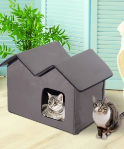 - Heated outdoor house keeps cats warm and sheltered