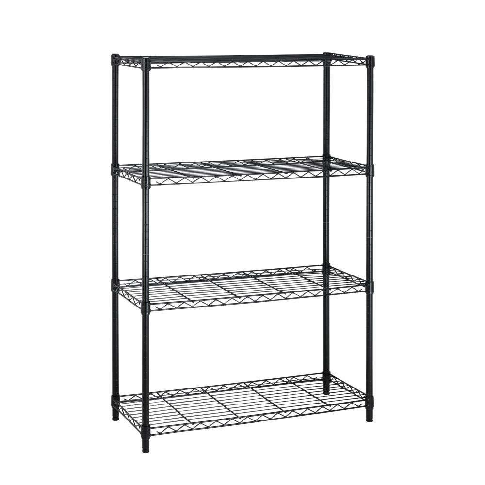 This is 4 tier wire shelf,all the shelf is can adjust height. This Heavy Duty 4-Shelf Metal Shelving Unit in Black Steel Finish is made of steel wire shelving.The weight limit for each shelf is 250 pounds, and the total weight limit for the entire shelf is 1000 pounds. The storage shelves provide an enormous amount of space for you and no occupy too much space.You can use this wire shelving in the kitchen bedroom garage and more. Tools, books,household appliances and other things can be placed on this wire shelving.