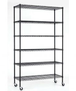 This is 6 tier wire shelf, you only need to spend 15min to install it. This Heavy Duty 6-Shelf Adjustable Metal Shelving Rack with Casters is made of steel wire shelving. Maximum weight capacity per shelf is 350lbs when equally distributed on feet levelers. Maximum entire unit weight capacity is 500lbs when equally distributed on casters. You can use the feet levelers or wheels to suit your needs. The storage rack provide an enormous amount of space for you. You can use this wire shelving in the kitchen bedroom garage. Immovably or portability, use the feet levelers or wheels to suit your needs. Multifunctional, suitable for bathroom kitchen garage and more, tools, books, clothes, bag and other things can be placed on it.