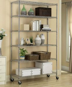 This is 6 tier wire shelf, you only need to spend 15min to install it. This Heavy Duty 6-Shelf Metal Storage Rack Shelving Unit with Casters is made of steel wire shelving. Maximum weight capacity per shelf is 220lbs when equally distributed on feet levelers. Maximum entire unit weight capacity is 500lbs when equally distributed on casters. You can use the feet levelers or wheels to suit your needs. The storage rack provide an enormous amount of space for you. You can use this wire shelving in the kitchen bedroom garage.