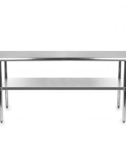 This Heavy Duty 72 x 24 inch Stainless Steel Kitchen Restaurant Prep Work Table is constructed from 18-gauge #430 stainless steel, and is the perfect work surface for use in a kitchen, bar, restaurant, laundry, school, hospital, or any other commercial setting. It is NSF certified to meet strict standards for public health protection and built for high-volume use to last a lifetime. This table features an extra heavy-duty top, an adjustable-height galvanized under-shelf, and galvanized legs with adjustable non-marring feet that eliminate table wobble on uneven floors. The edges on the front and back of the tabletop are rounded for working comfort. Fast and easy assembly.