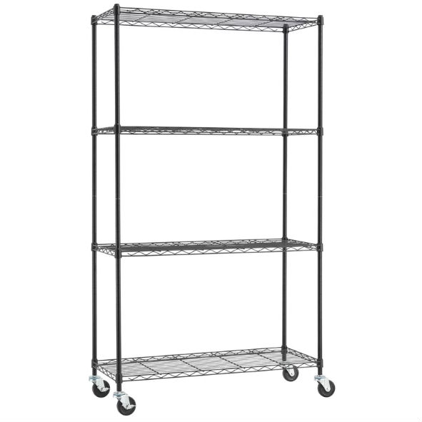 • Heavy Duty Black Steel 4-Tier Shelving Unit with Locking Casters