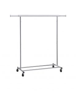 - Heavy Duty Chrome Plated Silver Metal Garment Rack Clothes Hanging Bar on Wheels