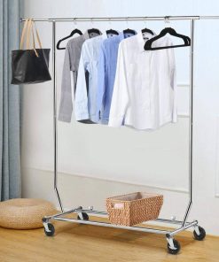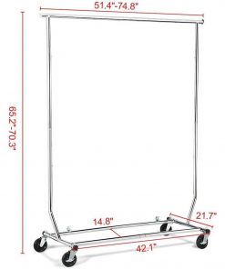 If you have tons of clothes but have limited or no closet space to organize them, this Heavy Duty Clothing Garment Rack with Locking Swivel Wheels – 250lb Capacity garment rack is a convenient solution. Found atop four large swivel wheels with brakes and made of chrome-plated metal, this rolling garment rack boasts high strength and durability, and easy maneuverability. Designed in a simple and collapsible structure, our rolling clothing rack ensures effortless and quick assembly and convenient storage. The extendable hanging rods and adjustable rod height allow for flexible and customizable usage. This garment rack is an ideal addition to dorm rooms, guest rooms, cloakrooms, or for commercial use.