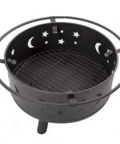 Heavy Duty Steel Metal Wood Burning Fire Pit with Moon and Stars Cutouts