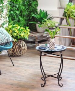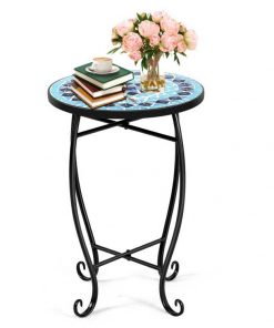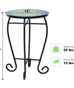 This Indoor/Outdoor Blue Mosaic Round Side Accent Table Plant Stand is perfect for both indoor and outdoor use as a patio plant side table, a porch side table, any beach theme décor, just by a swimming pool or anywhere. Coming with modern design and exquisite appearance, this classic mosaic side table adds a touch of elegant charm to any home.