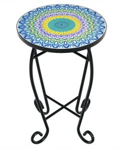 This Indoor/Outdoor Multi-Color Mosaic Round Side Accent Table Plant Stand is perfect for both indoor and outdoor use as a patio plant side table, a porch side table, any beach theme décor, just by a swimming pool or anywhere. Coming with modern design and exquisite appearance, this classic mosaic side table adds a touch of elegant charm to any home.