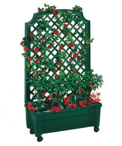 The Indoor/Outdoor Green Polypropylene Wheeled Trellis Planter is a truly unique one-of-a-kind planter designed in Holland, the land of flowers. Elegant and classic, this Indoor/Outdoor Green Polypropylene Wheeled Trellis Planter is ideal to grow your fondest plants that may require a support frame.. It has a clever double bottom self-watering system. It has lockable wheels, which make it easy to move from one place to another. The square-shaped planter can be used both indoors and outdoors. The planter is easy to maintain as it is water, warp, and fade resistant. It requires some assembly when it is being set up.
