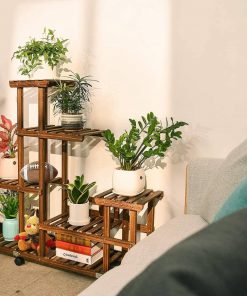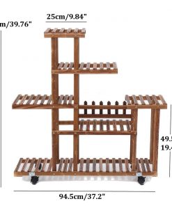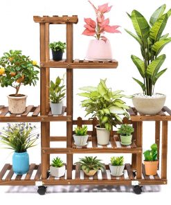 This Indoor Outdoor Solid Wood 6-Tier Plant Stand Planter Cart on Wheels has multipurpose wooden plant shelf with wheels and is not only a plants shelf rack, but also a bookshelf, display shelf, decorative stand, it fits for different occasions like balcony, patio, living room, garden etc. Heavy Duty Frame Construction. With the slanting stick reinforced on the base shelf and stainless steel screws which are lengthened that fix the plant stand sturdy and hold the plants steady. Lockable Wheels. Wheels with 360 degree rotation moving and locking design, can be attached on the base of this wood plant stand shelf. Saves your time and energy when you want to move the pots from the plant or do the cleaning job. Wooden Texture. The surface of the wooden shelf was polished many times, There is no burr anymore with a smooth touch that won’t hurt your fingers when you water.