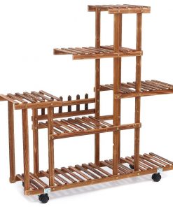 - Indoor Outdoor Solid Wood 6-Tier Plant Stand Planter Cart on Wheels