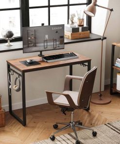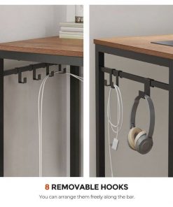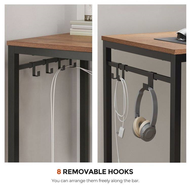 Heavy Duty Black Steel Frame Home Office Laptop/Computer Desk with durable manufactured wood top. Include 8 Hooks, which are great for storing items such as headphones, backpack, briefcase, purse, etc. Easy to assemble.