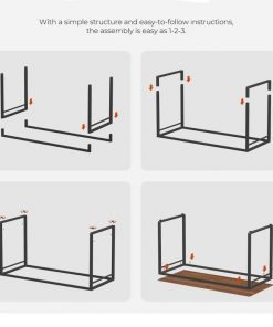 - Color: Black Metal Frame, Medium Brown Woodgrain Top
