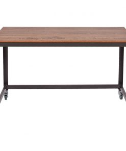 Industrial Modern Steel Frame Wood Top Computer Desk with Locking Wheels