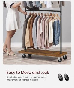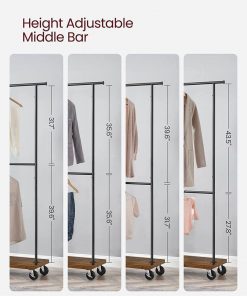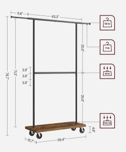 - Industrial Style Clothing Garment Rack Double Clothes Hanging Bar on Wheels