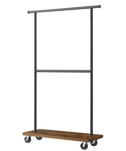 - Industrial Style Clothing Garment Rack Double Clothes Hanging Bar on Wheels