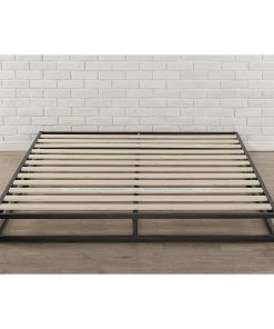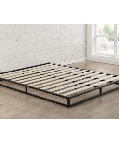 This King size 6-inch Low Profile Metal Platform Bed Frame with Wood Slat Mattress Foundation is designed for strength and style. Perfect for higher profile mattresses or those preferring a modern style. The extra strength steel framed mattress foundation features wooden slats that provide strong support for your memory foam, latex, or spring mattress. 10 inches high and compatible with or without a box spring. Easy to assemble and arrives in a narrow box to make moving through hallways and upstairs easier.