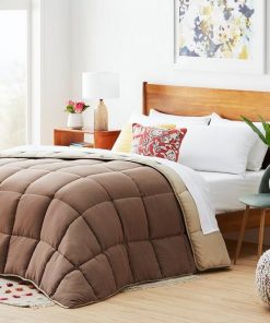 Perfect for curling up and staying warm this King Size All Seasons Plush Beige/Brown Reversible Polyester Down Alternative Comforter provides everything and more all year round! This piece features baffle box stitch construction for a classic look that doubles as a handy way to keep the filling from sliding and lends this piece a breathable touch. This mid weight 275 gsm comforter has 4 corner tabs to keep your duvet in place and since it’s machine washable, a quick cycle is all it takes to have this piece looking its best.
