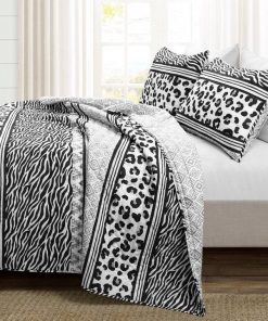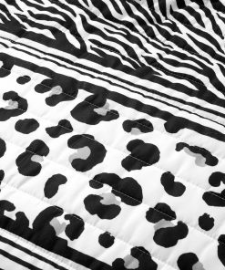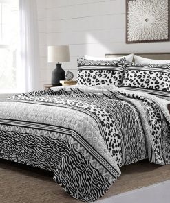 King Animal Print Zebra Leopard Black White Lightweight Reversible Quilt Set