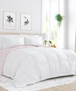 Elevate your bedroom or guest room with this classic King/Cal King 3-Piece Microfiber Reversible Comforter Set Pink/White. We love that this set comes in a range of colors, so you can find just the right look for your space. Its also reversible, so you can switch up your look with ease. All pieces are made of 100% microfiber, which is lint-free, non-pilling, and resistant to wrinkles; theyre also machine washable, so keeping everything fresh and clean is a breeze. The comforter and shams are filled with 5.31 oz. fill weight polyester in a solid hue with a baffle box weave.