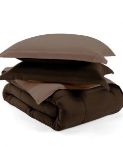 Elevate your bedroom or guest room with this classic King/Cal King 3-Piece Microfiber Reversible Comforter Set Light / Dark Brown. We love that this set comes in a range of colors, so you can find just the right look for your space. It’s also reversible, so you can switch up your look with ease. All pieces are made of 100% microfiber, which is lint-free, non-pilling, and resistant to wrinkles; they’re also machine washable, so keeping everything fresh and clean is a breeze. The comforter and shams are filled with 5.31 oz. fill weight polyester in a solid hue with a baffle box weave.