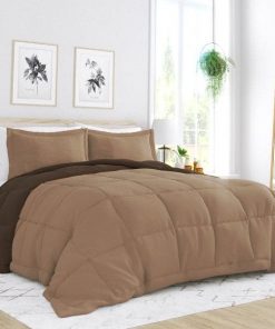Elevate your bedroom or guest room with this classic King/Cal King 3-Piece Microfiber Reversible Comforter Set Light / Dark Brown. We love that this set comes in a range of colors, so you can find just the right look for your space. It’s also reversible, so you can switch up your look with ease. All pieces are made of 100% microfiber, which is lint-free, non-pilling, and resistant to wrinkles; they’re also machine washable, so keeping everything fresh and clean is a breeze. The comforter and shams are filled with 5.31 oz. fill weight polyester in a solid hue with a baffle box weave.