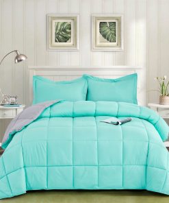 Update your bedroom with this King/Cal King Traditional Microfiber Reversible 3 Piece Comforter Set in Blue/Grey. This comforter set has nice double stitching overclock with piping making it elegant and luxurious. Crafted from microfiber polyester, this fade- and stain-resistant set can be tossed into the washing machine and dryer for fuss-free upkeep. The baffle box construction crafted with high-density needle stitching prevents the fiberfill from shifting, even after a wash.
