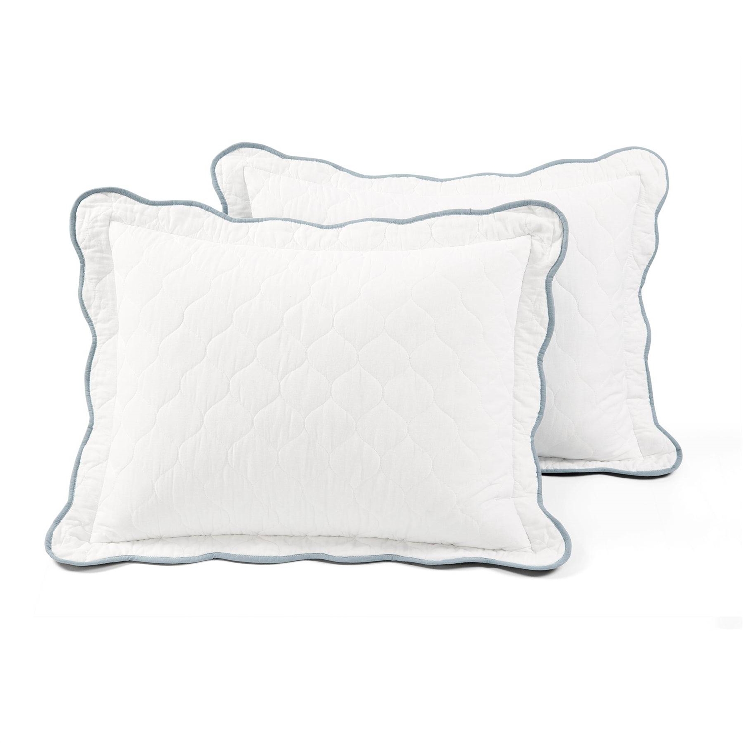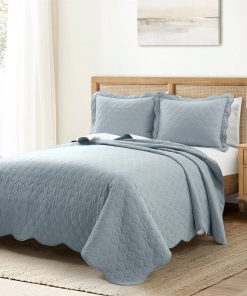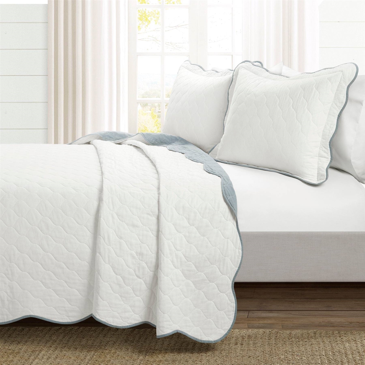 This stylish new Coastal Chic Scallop Edge Reversible Quilt 3 Piece Set features a charming scalloped edge and a classic quilted pattern on both sides of this reversible bedding. Enjoy the freedom and versatility to transform your space with a simple flip for a new colorway. Features a coastal style for any bedroom year round with this stunning Coastal Chic Scallop Edge Reversible Quilt 3 Piece Set. Switching up your decor is easy with this reversible bedding. Both sides have the same classic quilting style so you can always enjoy a high end look. This set includes one reversible quilt and two reversible shams with zipper closures at the bottom. You’ll be impressed with the incredible amount of special details that are incorporated in the design. Each piece of this Coastal Chic Scallop Edge Reversible Quilt 3 Piece Set is decorated with a lovely textured quilting pattern.