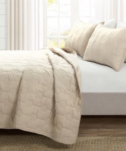 Style any bedroom with this King/CAL King Lightweight Beige Textured Cotton 3 Piece Quilt Set. Soft, breathable cotton adorned with an intricate embroidered honeycomb pattern creates this timeless, elegant look. Layer this bedding to complement any home decor style. Any bedroom style can be enhanced with this simply elegant quilt set. With texture being the star of the show, this Hexagon Honeycomb Textured Cotton Quilt 3 Piece Set features a unique blend of classic patterns for a look and feel you’ll love. This subtly stylish Hexagon Honeycomb Textured Cotton Quilt 3 Piece Set is perfect for any bedroom — it’s one solid color, embroidered and reversible. Expertly quilted for a added texture, you’ll love the cozy feel and versatility. Use it to instantly elevate your bedroom’s decor with its timeless quilting pattern. Enjoy comfort and breathability with this Hexagon Honeycomb Textured Cotton Quilt 3 Piece Set and enjoy sweet dreams and relaxation each night. The simple, yet unique design would work great in your teen’s bedroom, a guest bedroom, dorm room or primary bedroom. You can use this bedding set on its own or as an added layer in just about any design theme, such as farmhouse, coastal, hygge, minimalist and more.