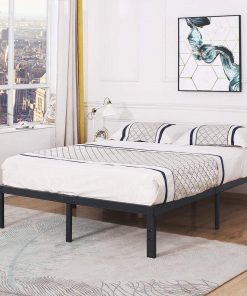 Our Heavy Duty Steel Metal Platform Bed Frame with wide wooden slats has a 3,500 lbs max weight capacity. Upgraded Extra-strong wood slats provide stable and secure support for your king size mattress. No box spring is needed. Easy to Assemble.