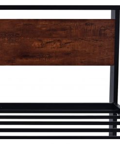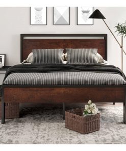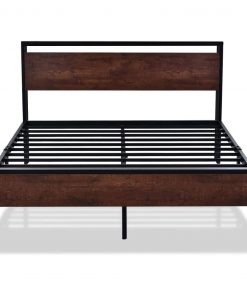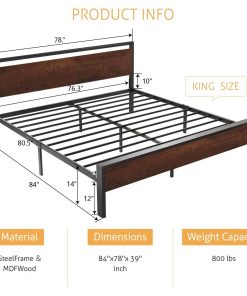 • The combination of rustic styled headboard and footboard and retro frosted metal slats takes a strong industrial/rustic flair, rich your room in Industrial and unique individualism. The wood headboard consists of Waterproof & Scratch proof MDF board.