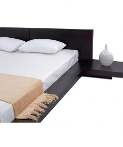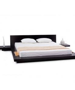 • Bed is a low profile Japanese designs platform bed with sleek and clean lines and two nightstands on both sides constructed from strong MDF with Espresso color finish