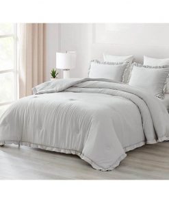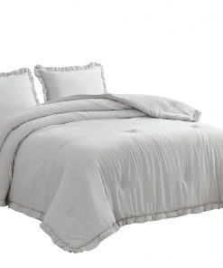 Transform your bedroom in a sophisticated and luxurious manner with this King Oversized Grey Stone Washed Ruffled Edge Microfiber Comforter Set. An attractive ruffled edge trim with an elegant yet simple presentation that makes you feel right at home. Fashionably providing everyday comfort. Lightweight, high loft comforter with adequate warmth for year-round use. The comforter is made of 100% microfiber polyester, giving a super soft smooth, and cozy feel. The fabric is stone-washed which creates a natural attractive crinkled fabric effect to enhance the aesthetics of the comforter.