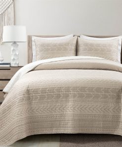 Add a modern Scandinavian style to your bedroom with this 3 Piece King Size Scandinavian Beige Reversible Cotton Quilt Set. The quilt has stripes, chevron, and other geometric patterns. This 3 piece set includes a soft 100% cotton quilt and 2 matching pillow shams. The lightweight cotton quilt is perfect for all seasons. The reversible design gives you two stylish patterns in one set.