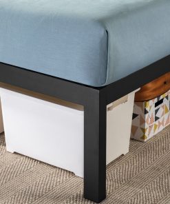 Make the simple life much easier with the King size 18 Inch Easy Assemble Metal Platform Bed Frame Wooden Slats. The only tool you need to set up a platform bed is a mallet which comes already included. The King size 18 Inch Easy Assemble Metal Platform Bed Frame Wooden Slats is made of a premium heavy duty steel with clean edges, giving your space a refined and modern look. There is ample space beneath the frame accommodates for extra storage to help keep your room organized. With no box spring needed, easily assemble and place your mattress on top to make a simple yet bold statement.