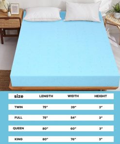 Have you found a satisfactory mattress topper? This King size 3-inch Thick Gel-Infused Air Foam Mattress Topper in Light Blue is your perfect choice. Gel-infused material promotes air flow and keeps cool while sleeping. Our mattress topper helps relieve pain and reduce pressure points for an enhanced feel and greater night’s sleep. It responds to your body weight and shape to make your sleep more comfortable. Finally, it should be mentioned that this mattress topper perfectly adapts to the contour of your back, relieving the fatigue of a day’s work and greatly improving the quality of sleep. If you are looking for a satisfactory mattress topper like this, do not hesitate to place an order!
