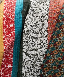 Free spirited, untamed, rustic and yet chic, this King size 3-Piece Quilt Set in Modern Colorful Stripe Geometric Floral Pattern is a perfect piece of modern time creativity. Unique designs in bright and colorful floral and geometric patterns run across the quilt surface with back in geometric pattern. Made from 100% cotton, this set is soft to the hand and has wonderful quilting details.