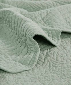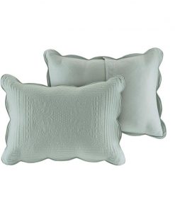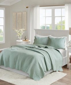 This King/Cal King Size 3 Piece Reversible Scalloped Edges Microfiber Quilt Set in Seafoam is perfect as a layering piece or as an alternative to your comforter for a charming country look. The set flaunts a classic stitch pattern with scalloped edges that adds an elegant touch to any bedroom.
