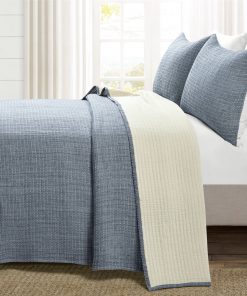 Give your bedroom a stylish upgrade with this King Size 3-Piece Cotton Yarn Woven Quilt Coverlet Set in Navy/Cream. This high quality affordable set is yarn dyed and woven with pick stitch detail for a textured solid color look. Use it as stand-alone bedding or a layering piece. This King Size 3-Piece Cotton Yarn Woven Quilt Coverlet Set in Grey/Cream is STANDARD 100 by OEKO-TEX certified. The fabric, dyes, and all components have been tested in an independent laboratory and certified against a list of more than 350 harmful substances. 3-Piece Set Includes: One Quilt/Coverlet and Two Pillow Shams.