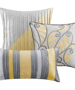 Relax in complete luxury with this King Size 7 Piece Bed In A Bag Comforter Set Faux Silk Yellow Gray Stripes. Sleek piping of the fabric on the comforter set and pillows gives a strong visual dimension. Everything is included with this jumbo set. Come with Comforter, Bed Skirt, 2 Pillow Shams, 3 Decorative Pillows! Machine wash, gentle cycle and separately. Tumble dry low. Spot clean decorative pillows.