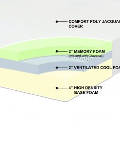 • Mattress layers: 2″ memory foam, 2″ Super Soft Foam with pressure relief system and 4″ high density foam