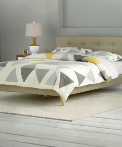 - King size Beige Fabric Upholstered Mid-Century Style Headboard