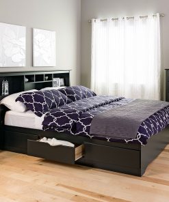 King size Black Wood Platform Bed Frame with Storage Drawers