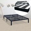 Contemporary platform bed frame for a king mattress; with 6 20-inch deep drawers built into platform for extra storage Ready-to-assemble bed constructed with quality laminated composite woods, plywood slats, and metal supports; black finish Metal slides with safety stops for smooth drawer opening and closing; discrete finger pull handles No Boxspring necessary. Necessary hardware included; Matching Headboard Sold Separately Mattress and bedding not included Measures 81-3/4 inches long by 78-1/2 inches wide by 18-3/4 inches high assembled; limited 5-year warranty Dimensions: 81.5 x 78.5 x 18.8 inches Weight: 80.1 lbs