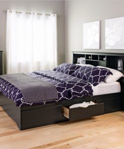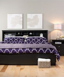 This King size Bookcase Headboard in Black Wood Finish features three compartments which provide ample space for bedside reading material, alarm clocks, and other necessities. Contemporary in design and style, it will be the perfect addition to a bedroom with a country, casual or transitional decor. Headboard features high quality, laminated composite wood product construction with attractive profiled MDF (medium density fiberboard) tops and moldings.