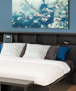- King size Bookcase Headboard in Washed Black Wood Finish