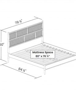 With asymmetrical cane paneling and conical, tapered legs, this solid wood bed frame is our greatest homage to mid-century modern design. Thanks to highly durable natural elements, solid hardwood, and cane tested to withstand sitting, this bed will make a statement in your bedroom for as long as you keep it. Crafted from solid eucalyptus hardwood harvested from renewable plantation forests. Designed for use without a box-spring. Back is semi-finished. To allow you to sit against the headboard without worrying about stretching the cane panels, we used a material made from plant-based fiber and reinforced nylon tested for use in chair seats. The panels are stretched and attached to the headboard by hand. 100% Solid Wood – Made from a mix of eucalyptus hardwood and solid pine wood with eucalyptus veneer that provides a smooth and flawless surface. Finished with a non-toxic low-VOC paint made with solvents from 100% renewable sources.