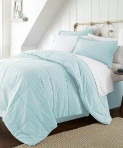 King size Microfiber 6-Piece Reversible Bed-in-a-Bag Comforter Set in Aqua Blue
