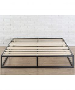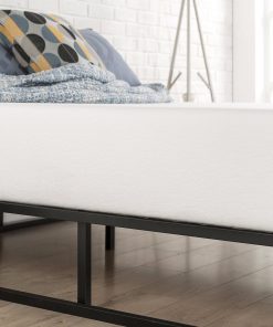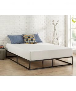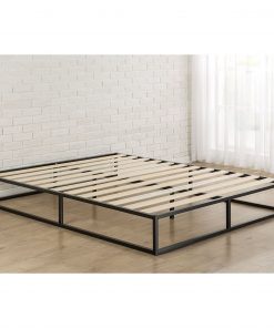This King size Modern 10-inch Low Profile Metal Platform Bed Frame with Wood Slats is designed for strength and style. Perfect for higher profile mattresses or those preferring a modern style. The extra strength steel framed mattress foundation features wooden slats that provide strong support for your memory foam, latex, or spring mattress. 10 inches high and compatible with or without a box spring. Easy to assemble and arrives in a narrow box to make moving through hallways and upstairs easier.